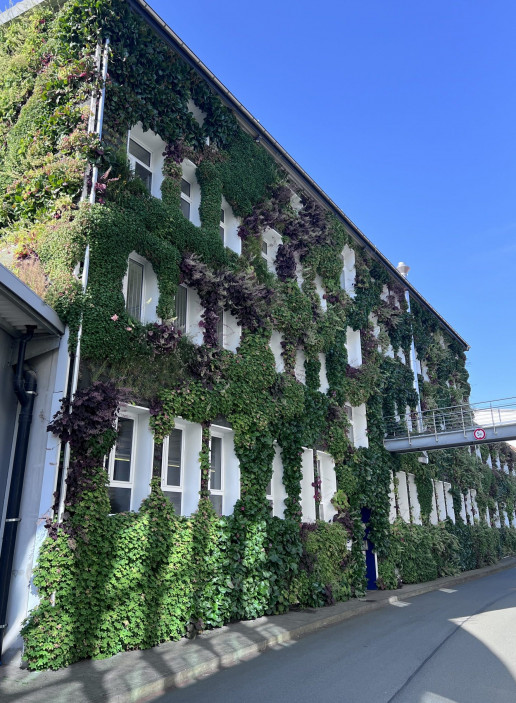 Durch die Fassadengestaltung werden die Anforderungen der Energieeinsparverordnung (EnEV) unterstützt. Besonders bei heißen Sommertagen sorgt die Begrünung dafür, dass das Gebäude angenehm temperiert bleibt, wodurch das Raumklima für Mitarbeitende verbessert wird. Darüber hinaus trägt die Bepflanzung zur ökologischen Aufwertung der Umgebung bei und stärkt das nachhaltige Erscheinungsbild des Unternehmens.